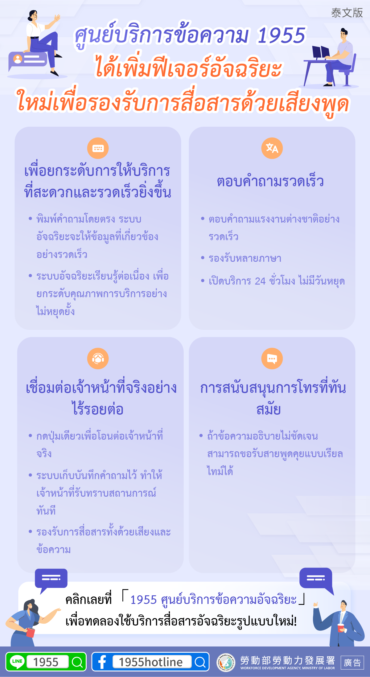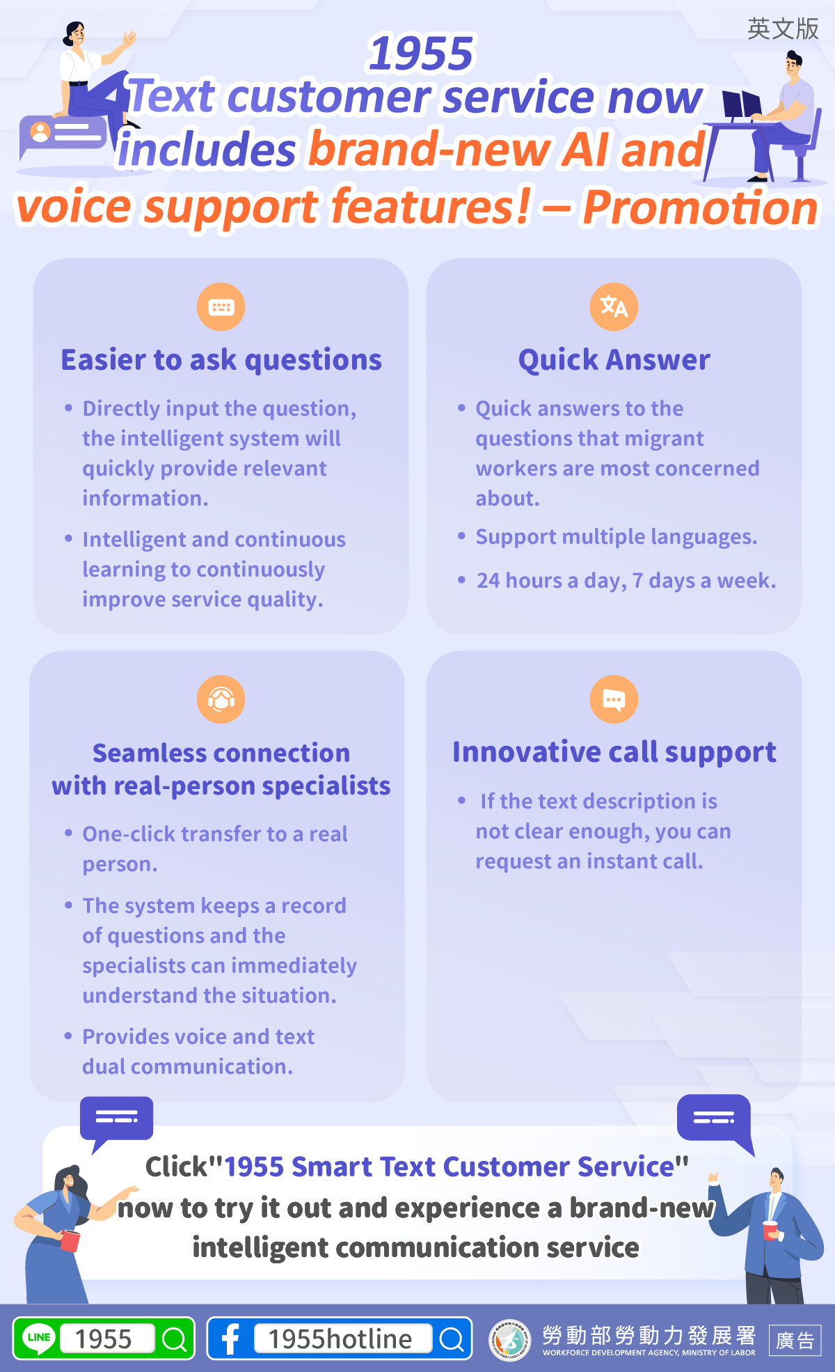活動訊息:1955文字客服加入全新智能化和語音支援功能-多國語言版