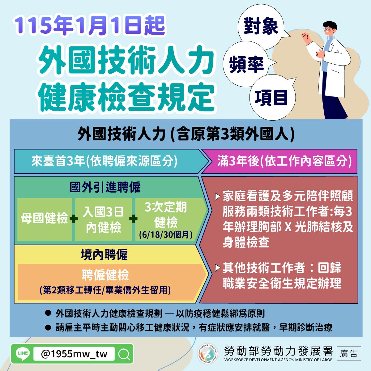 •[另開新視窗]115年1月1日起,外國技術人力健康檢查規定調整