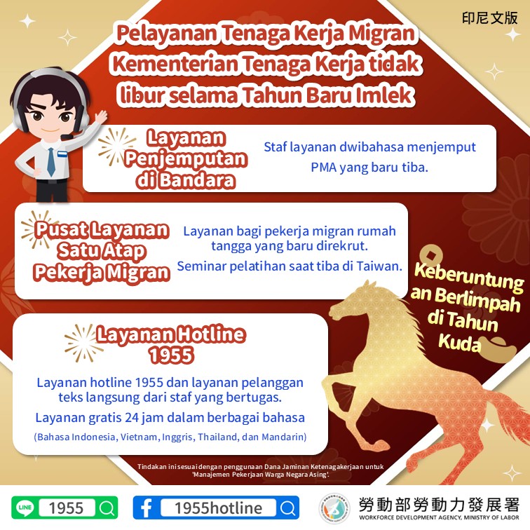 ▍Pelayanan Tenaga Kerja Migran Kementerian Tenaga Kerja tidak libur selama Tahun Baru Imlek