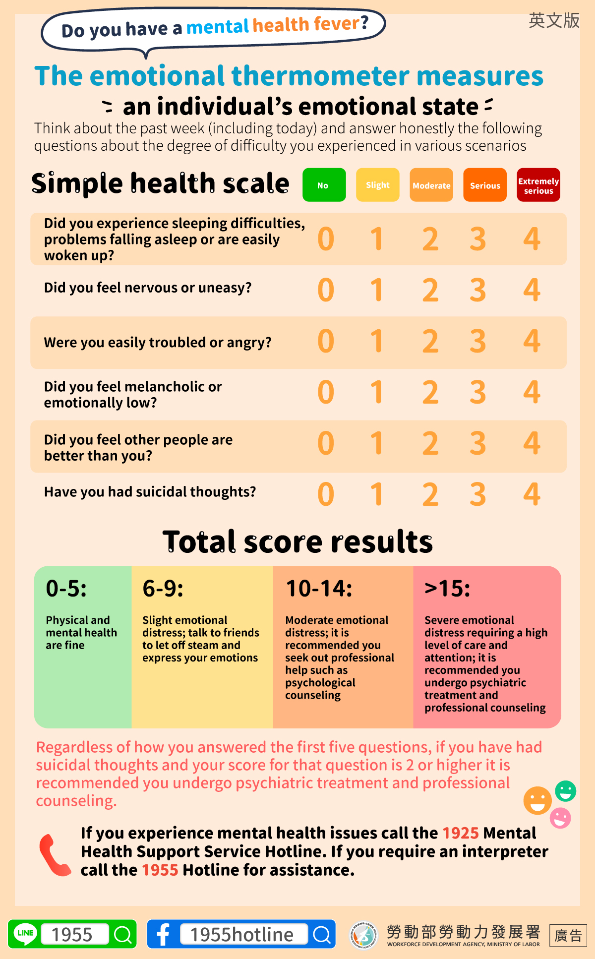 If you experience mental health issues call the 1925 Mental Health Support Service Hotline. If you require an interpreter call the 1955 Hotline for assistance.