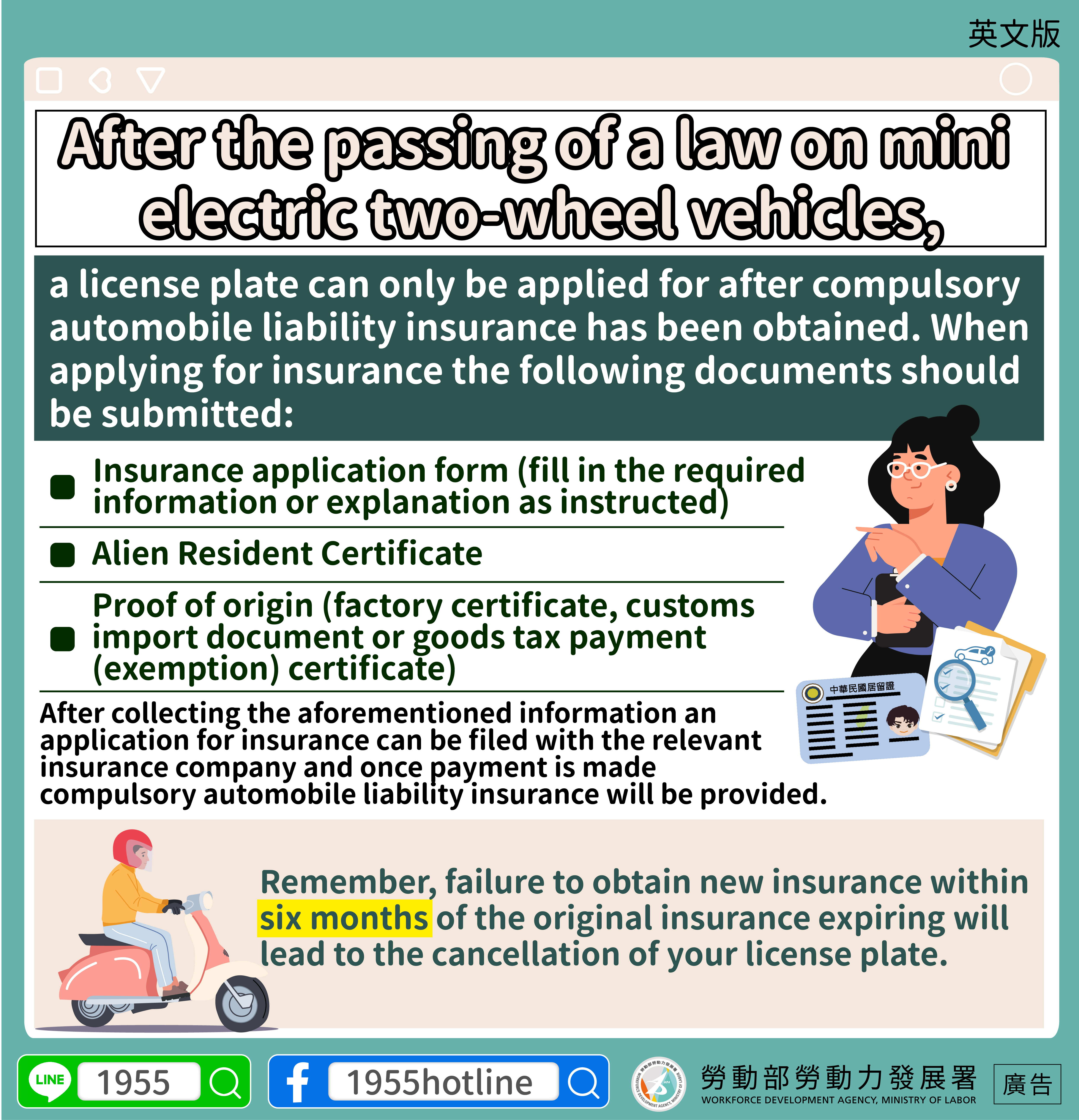▍After the passing of a law on mini electric two-wheel vehicles,a license plate can only be applied for after compulsory automobile liability insurance has been obtained. When applying for insurance the following documents should be submitted: