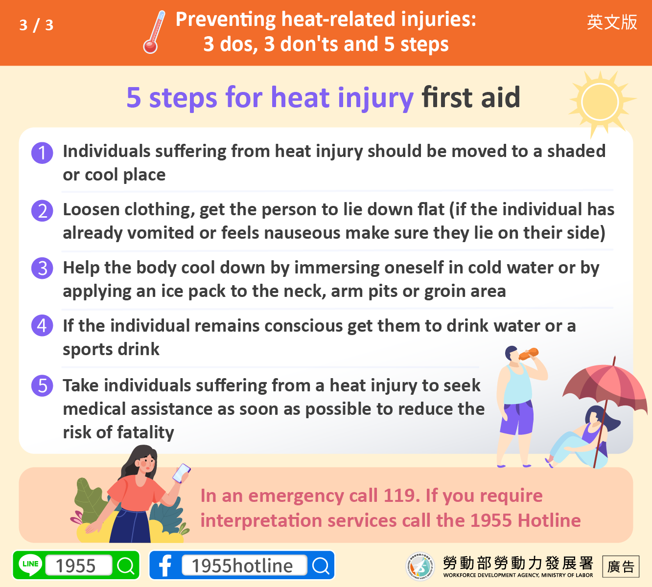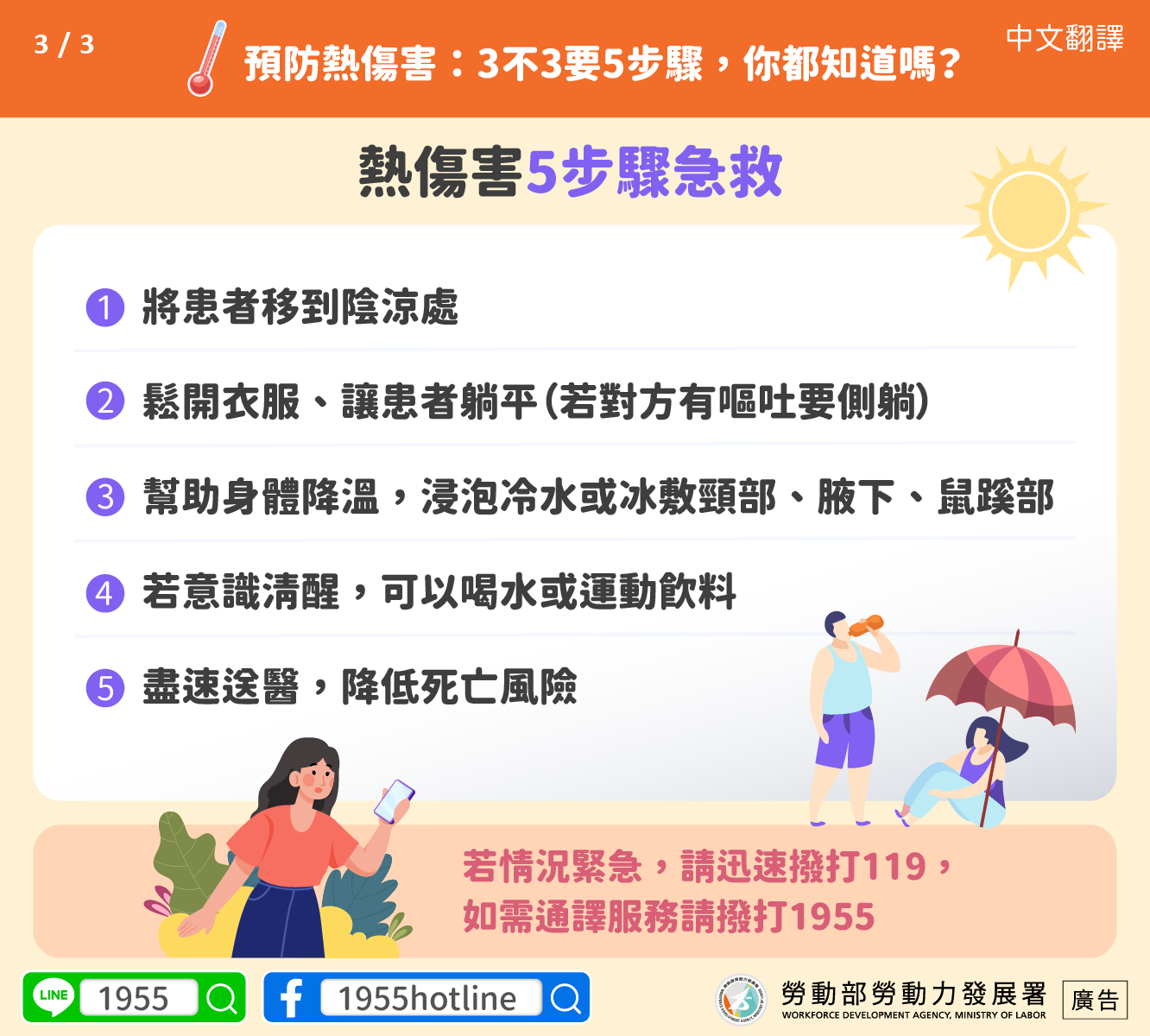 若情況緊急,請迅速撥打119,如需通譯服務請撥打1955