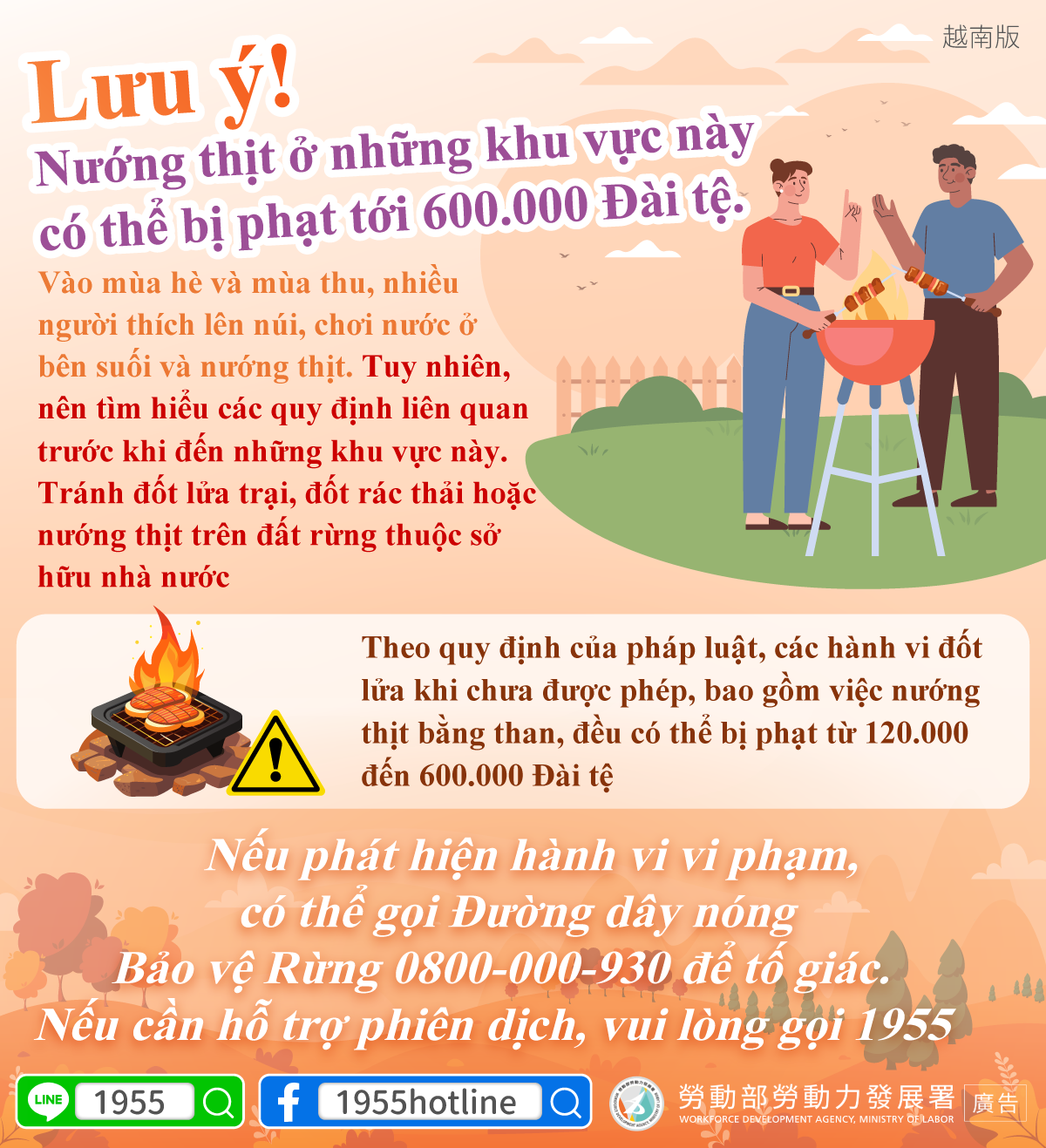 標題:Lưu ý! Nướng thịt ở những khu vực này có thể bị phạt tới 600.000 Đài tệ.