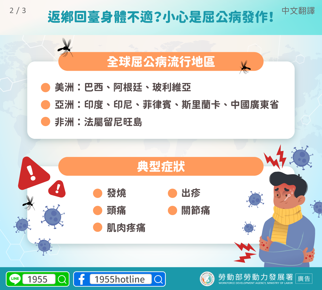標題:LINE@移點通-【返鄉回臺身體不適?小心是屈公病發作!】-多國語言版