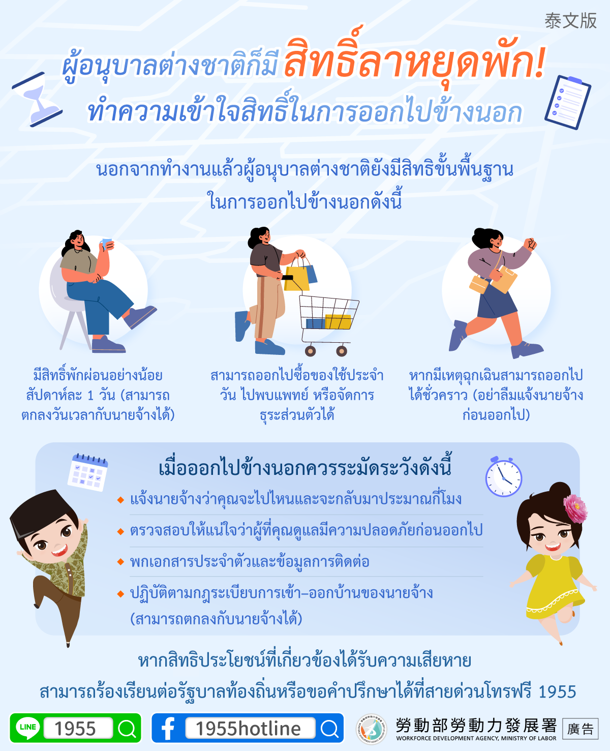 •หากมีเหตุฉุกเฉินสามารถออกไปได้ชั่วคราว (อย่าลืมแจ้งนายจ้างก่อนออกไป)