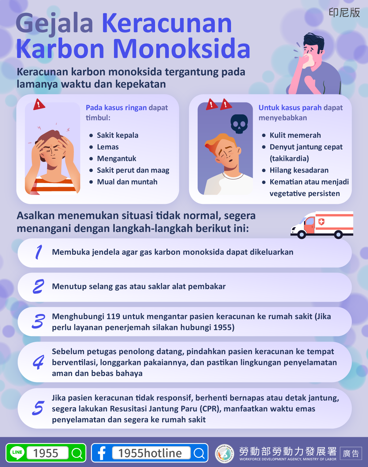 3.Menghubungi 119 untuk mengantar pasien keracunan ke rumah sakit (Jika perlu layanan penerjemah silakan hubungi 1955)