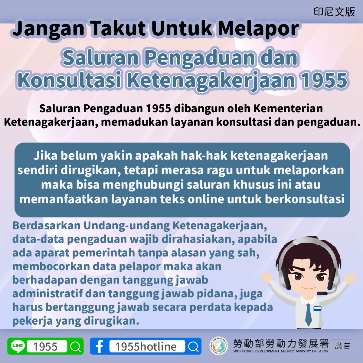 ▍Jangan Takut Untuk Melapor Saluran Pengaduan dan Konsultasi Ketenagakerjaan 1955