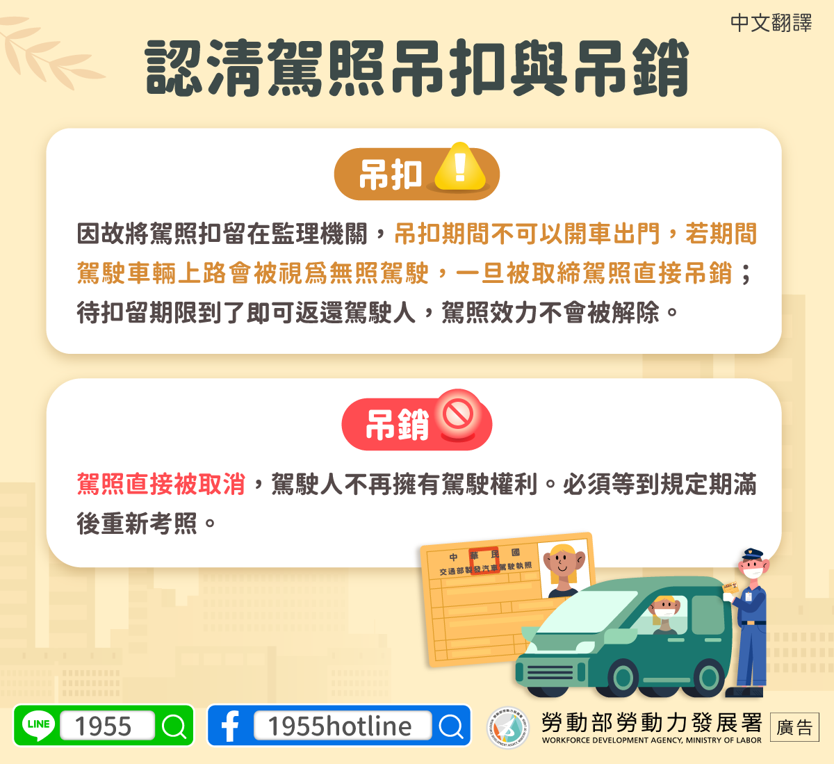 標題:LINE@移點通-【認清駕照吊扣與吊銷】-多國語言版