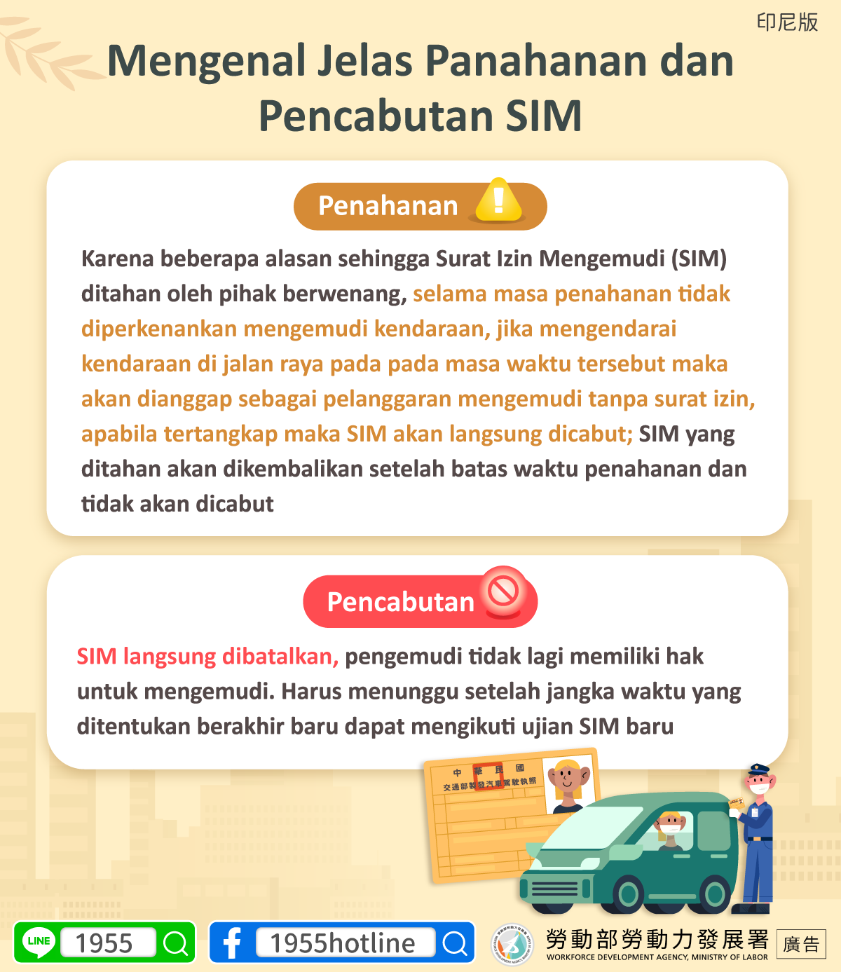 Pencabutan - SIM langsung dibatalkan, pengemudi tidak lagi memiliki hak untuk mengemudi. Harus menunggu setelah jangka waktu yang ditentukan berakhir baru dapat mengikuti ujian SIM baru