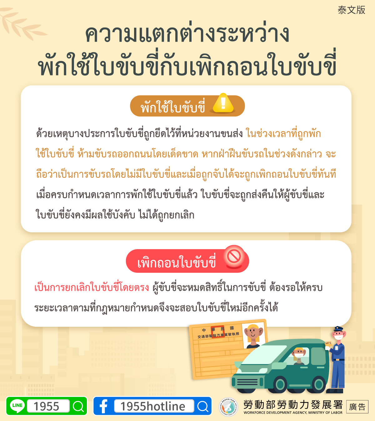 ▍ความแตกต่างระหว่างพักใช้ใบขับขี่กับเพิกถอนใบขับขี่