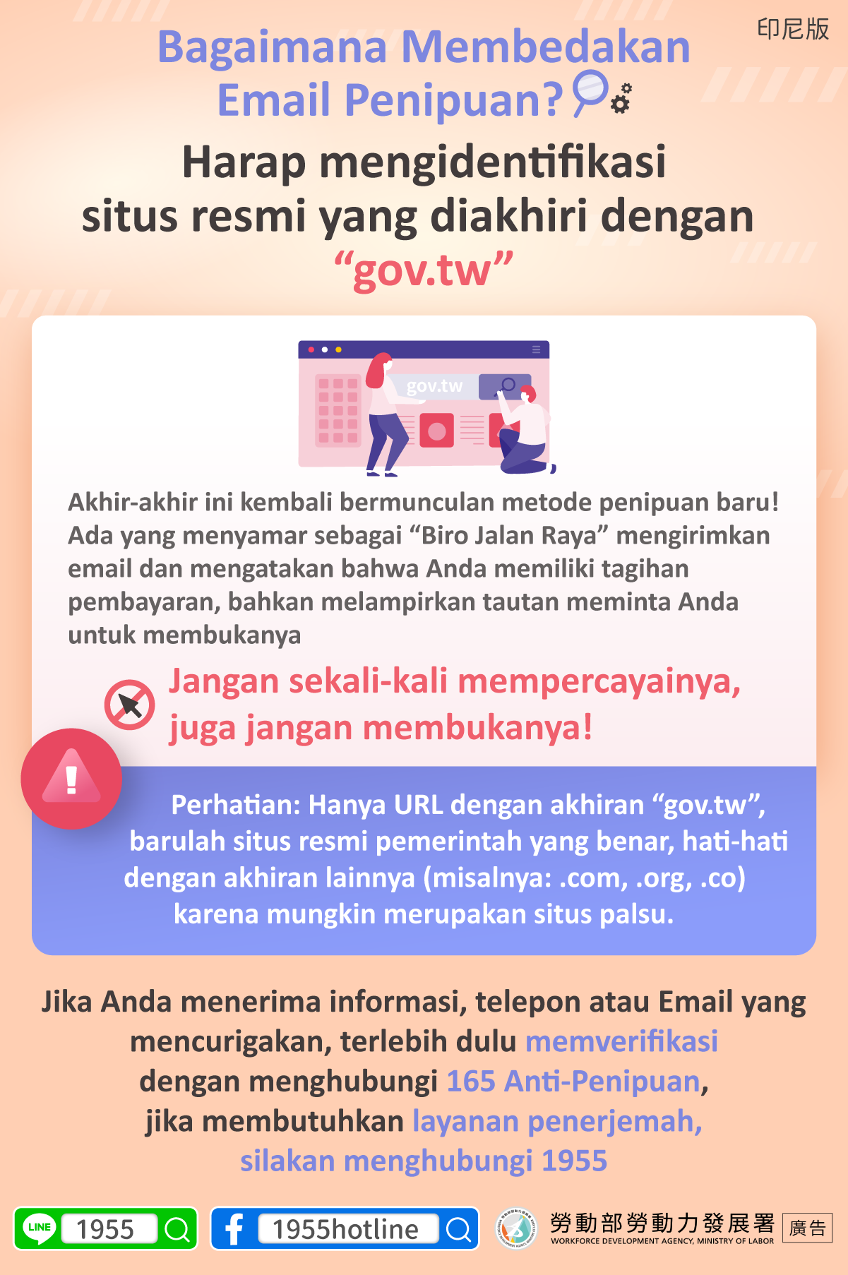 ▍Bagaimana Membedakan Email Penipuan? Harap mengidentifikasisitus resmi yang diakhiri dengan “gov.tw”