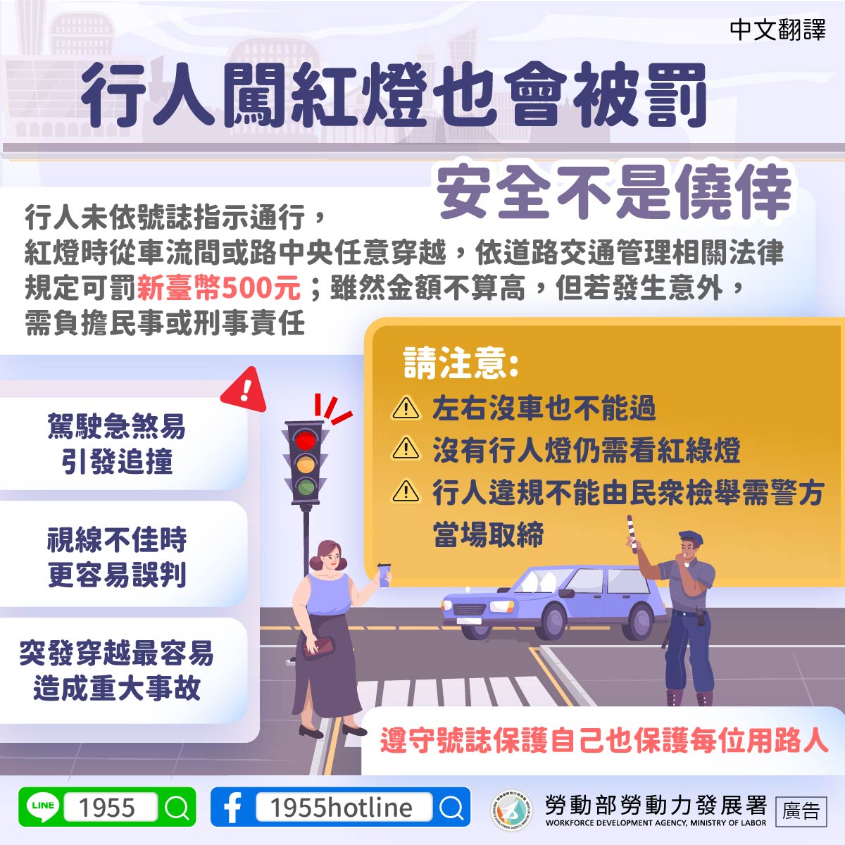 ▍行人闖紅燈也會被罰,安全不是僥倖