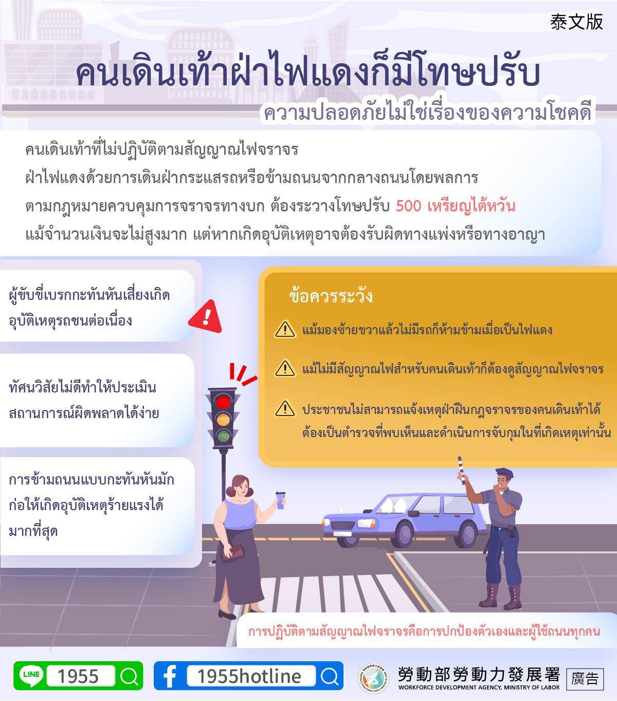 ▍คนเดินเท้าฝ่าไฟแดงก็มีโทษปรับความปลอดภัยไม่ใช่เรื่องของความโชคดี