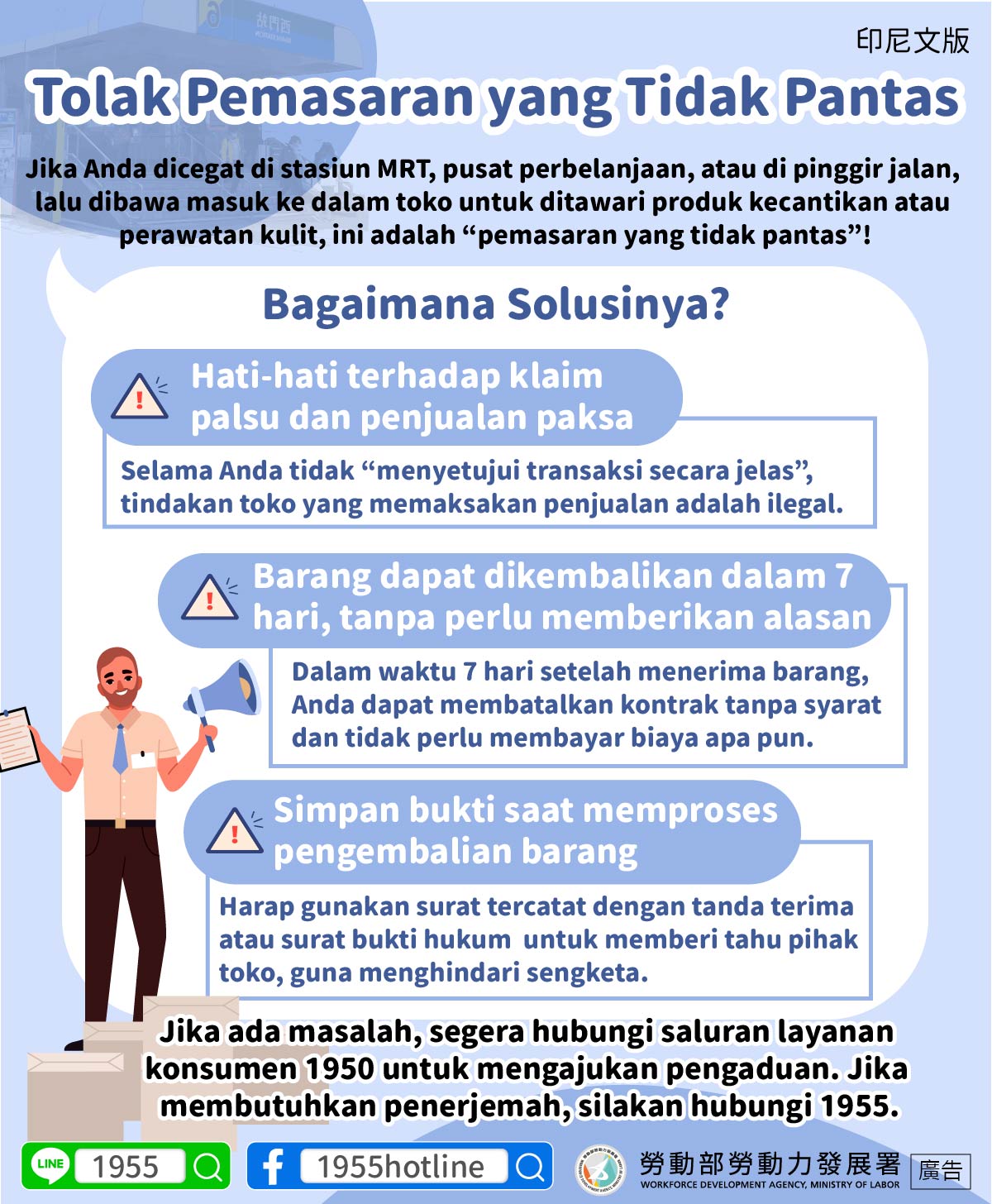 Jika Anda dicegat di stasiun MRT, pusat perbelanjaan, atau di pinggir jalan, lalu dibawa masuk ke dalam toko untuk ditawari produk kecantikan atau perawatan kulit, ini adalah “pemasaran yang tidak pantas”!