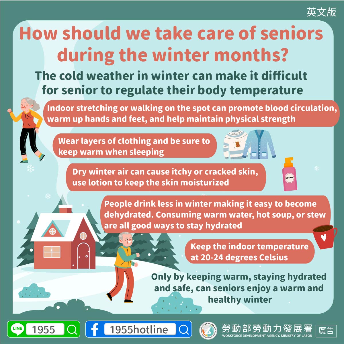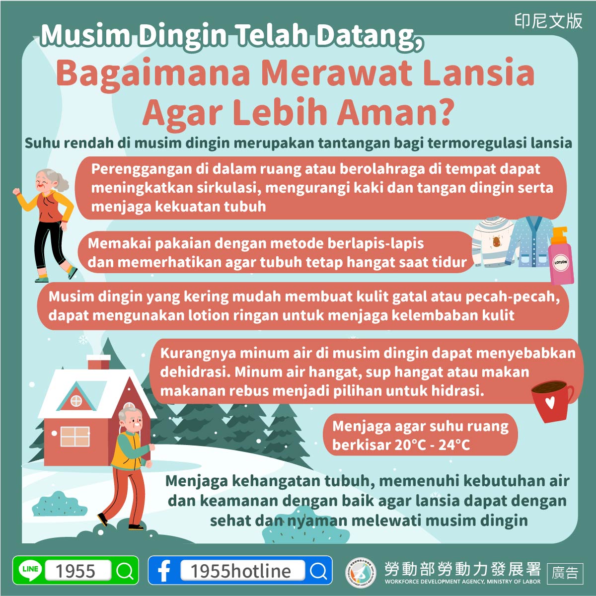 Menjaga kehangatan tubuh, memenuhi kebutuhan air dan keamanan dengan baik agar lansia dapat dengan sehat dan nyaman melewati musim dingin