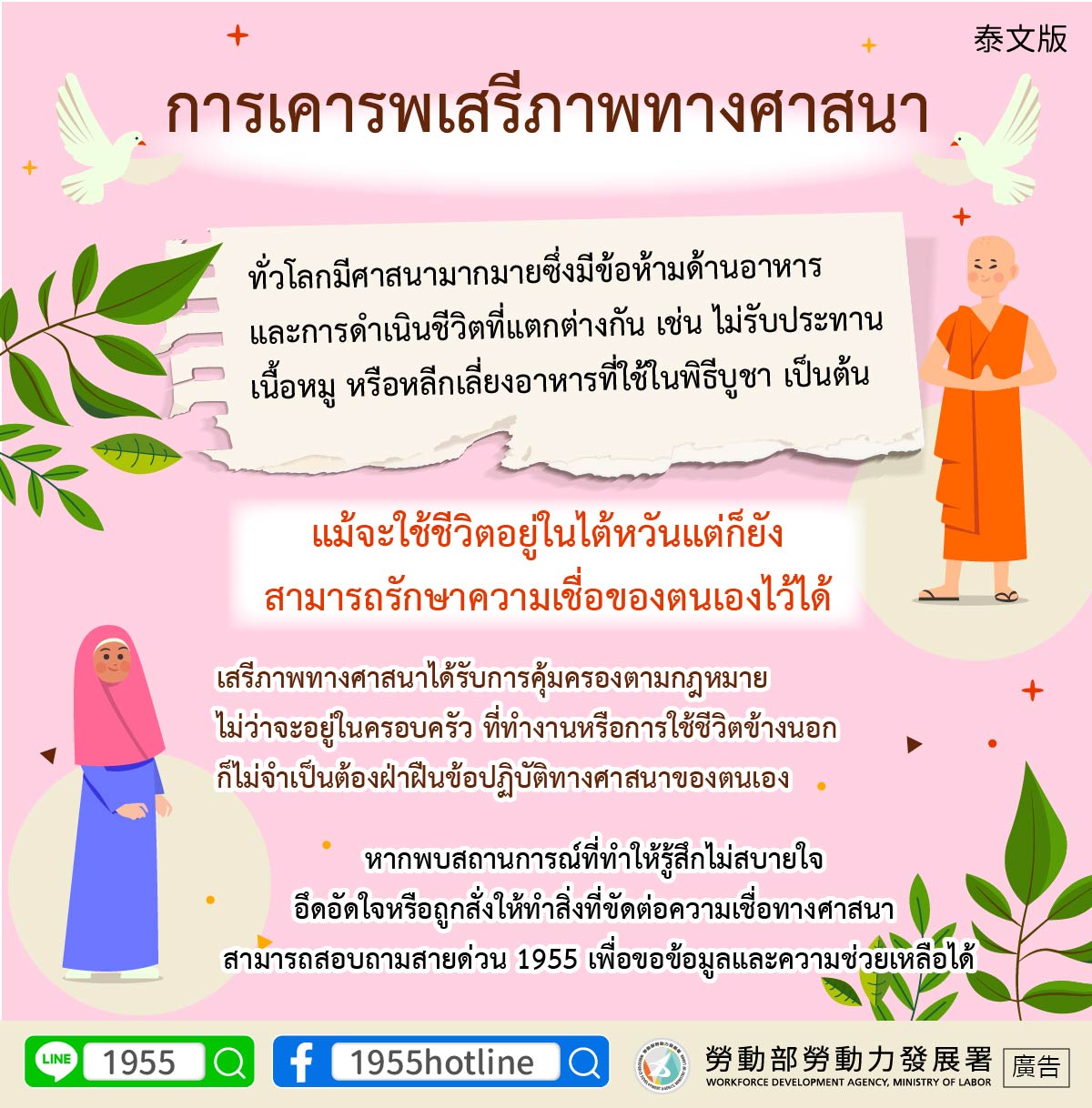 หากพบสถานการณ์ที่ทำให้รู้สึกไม่สบายใจ อึดอัดใจหรือถูกสั่งให้ทำสิ่งที่ขัดต่อความเชื่อทางศาสนา สามารถสอบถามสายด่วน 1955 เพื่อขอข้อมูลและความช่วยเหลือได้