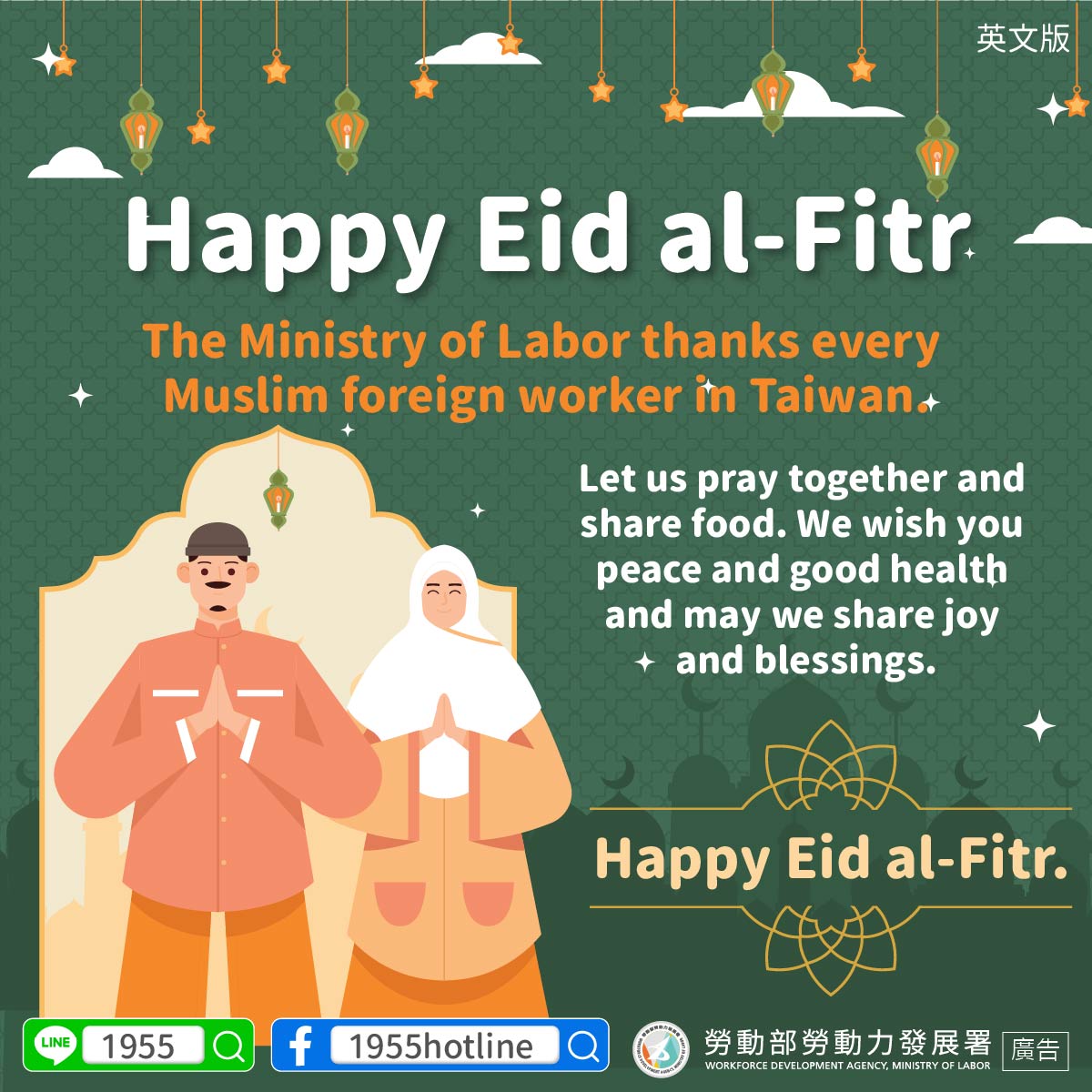 The Ministry of Labor thanks every Muslim foreign worker in Taiwan.