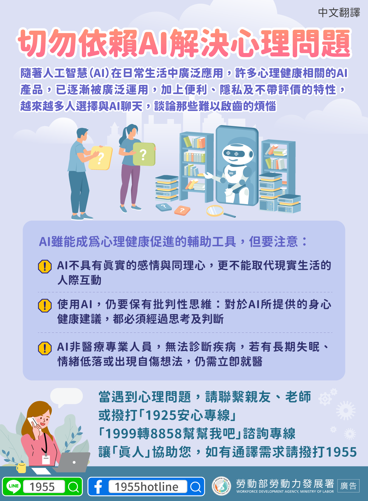 讓「真人」協助您,如有通譯需求請撥打1955