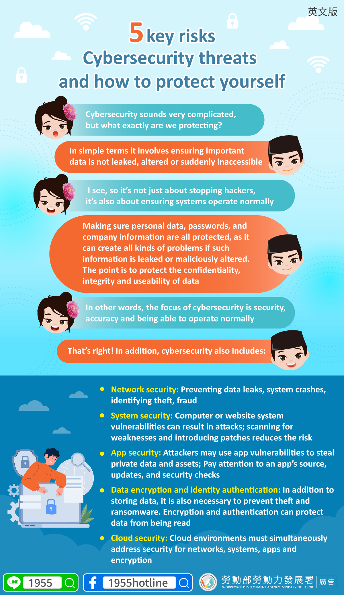B:That’s right! In addition, cybersecurity also includes: