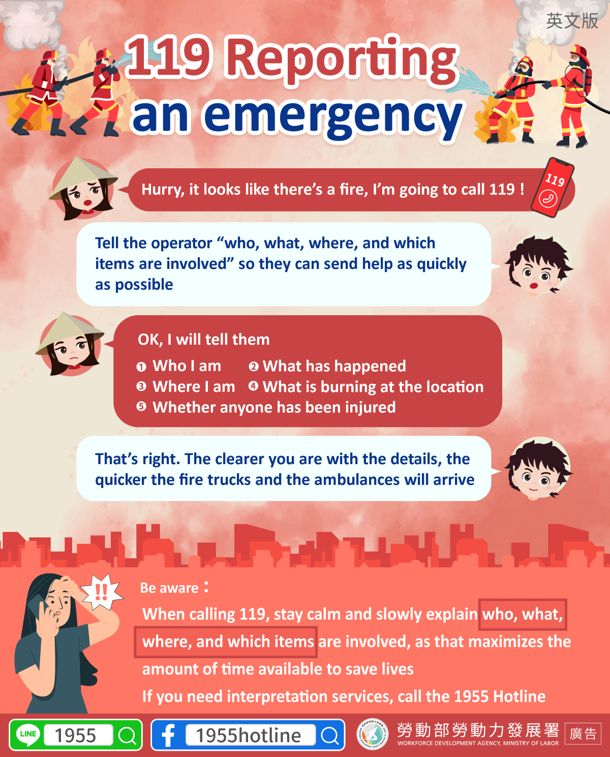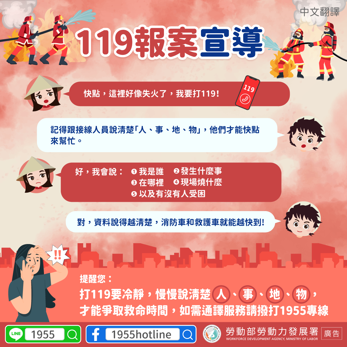 才能爭取救命時間,如需通譯服務請撥打1955專線